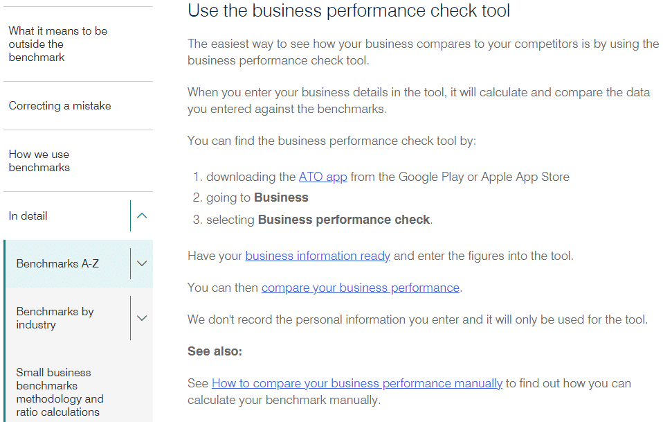 The Australian Taxation Office (ATO) publishes small business benchmarks to help small business owners understand how their performance compares to other businesses in the same industry.