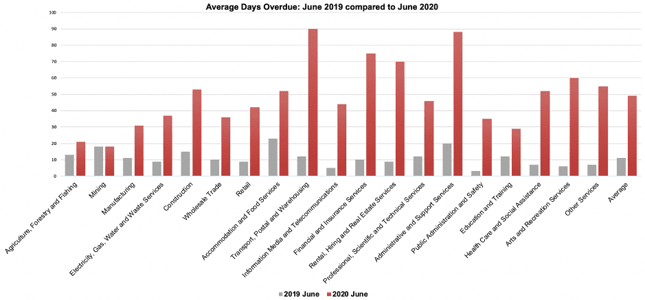 According to 2020 Q2 data, every industry in Australia except mining has seen a dramatic increase in late payments. On average, payment times have risen 342.7% across all sectors.