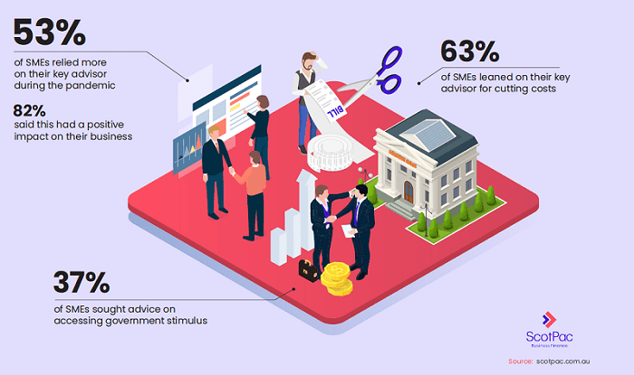 Only one in 10 ‘went their own way’ and didn’t seek out external advice, with very small cohort of SMEs (4.5%) relying less on their key advisors than they did before the pandemic.